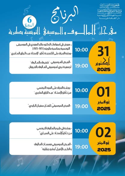 غير مصنفمهرجان المالوف والموسيقى التونسية بطبربة المندوبية الجهوية للشؤون الثقافية بمنوبة28 أكتوبر 202528 أكتوبر 202501 mins عدد المشاهدات 39 تصفّح المقالات Previous: أكتوبر الفنون تحت شعار: “مستقبلنا أمل… لا للمخدرات”Next: ندوة فكرية بدار الثقافة وادي الليل