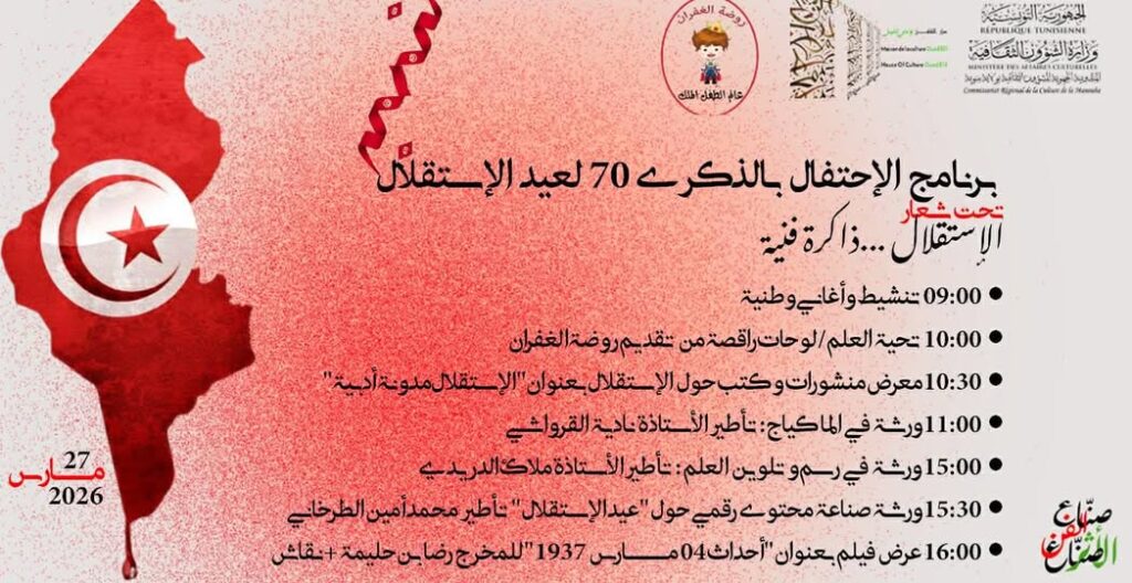 غير مصنفالإحتفال بعيد الإستقلال بدار الثقافة وادي الليل المندوبية الجهوية للشؤون الثقافية بمنوبة26 مارس 20262 أبريل 202601 mins عدد المشاهدات 3 تصفّح المقالات Previous: خرج المسرحي اللي فيك بدار الثقافة برج العامريNext: وادي الليل مدينة للخط العربي